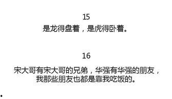 亲爱的读者们,你是不是也和我一样,闲暇之余喜欢翻翻那些让人捧腹大笑的娱乐吃瓜经典语录呢?那些或幽默、或讽刺、或深情的句子,仿佛一剂强心针,让我们在忙碌的生活中找到一丝轻松和快乐。今天,就让我带你一起走进这个充满欢乐的世界,盘点那些让人回味无穷的娱乐吃瓜经典语录大全吧!